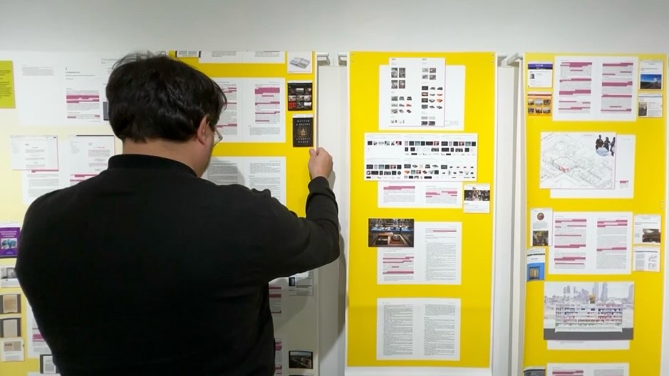 The exhibition, Reading Architecture from Public to Commons, opens up the homonymous book to expose its contents visually, offering an opportunity for a first read that extends the connections of the printed document and creates a physical space for additional interpretation. Highlighting and complementing textual excerpts with imagery, the exhibition invites viewers to scroll through the contents-manually, in a situation distinct from the linear act of reading, to extend, link, or even rethink the book’s original ideas. The exhibition highlights the words and work of Pelin Tan, Amira Hanafi, Marina Otero Verzier, Fernando Portal, Nandini Bagchee, coopia, Emanuel Admassu, Luciana Varkulja, Linda Schilling Cuellar, Elis Mendoza, Janette Kim, Bryan Lee Jr., and words by Andrés Jaque.